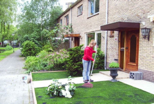 Kunstgras kan je overal aanleggen, is onderhoudsvriendelijk en heeft in de winter en in de zomer dezelfde frisse uitstraling.